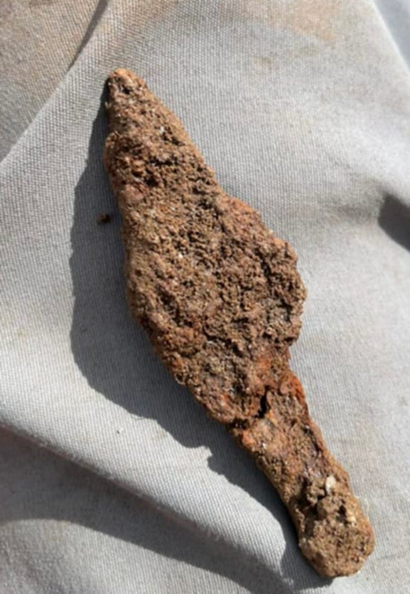 The artefacts from 2024 are modest but consistent. The iron angle-backed knife is a domestic tool. The line sinker points to active exploitation of the fisheries. The hearth in Building 2, domestic and compact, implies seasonal or intermittent habitation. The consistently thin, largely sterile floor deposits across all sampled structures is perhaps the most significant overall finding: this is not a site of intensive, long-term occupation. Whether that reflects seasonal assembly use or periodic raiding activity, we cannot yet say with confidence.